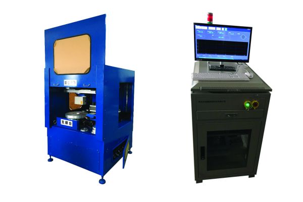 多功能測(cè)量?jī)x是我公司為某磨具制造公司開發(fā)的砂輪基體測(cè)量設(shè)備。設(shè)備設(shè)置2只二維激光測(cè)量傳感器,可測(cè)量盤狀基體的外徑、內(nèi)徑、高度、溝槽尺寸及體積等特征尺寸。二維激光測(cè)量傳感器1只安裝在側(cè)方,通過基體在托盤上旋轉(zhuǎn)所取得的測(cè)量數(shù)據(jù)計(jì)算基體外徑、高度、側(cè)面溝槽等尺寸;另1只安裝在基體上方,可前后、左右移動(dòng)掃描測(cè)量基體上表面,從而測(cè)量基體的高度、內(nèi)徑、上表面溝槽等特征尺寸。